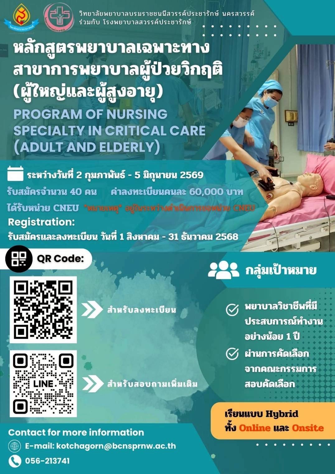 ✨โครงการ "หลักสูตรพยาบาลเฉพาะทางผู้ป่วยวิกฤติ ผู้ใหญ่และผู้สูงอายุ"